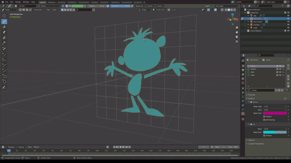 Sketch N' Carve is an artist friendly modeling tool designed to simplify and speed up 3D modeling by taking advantage of Blender's Grease Pencil tools. It allows the user to sketch and convert any drawing to 3D geometry with a single click. It is an alternative way to modeling that gives the user tremendous artistic freedom and speed and the ability to model without ever having to touch a single vertex.