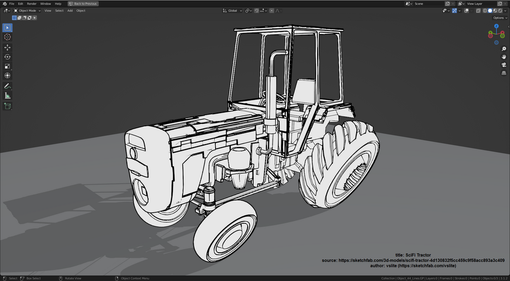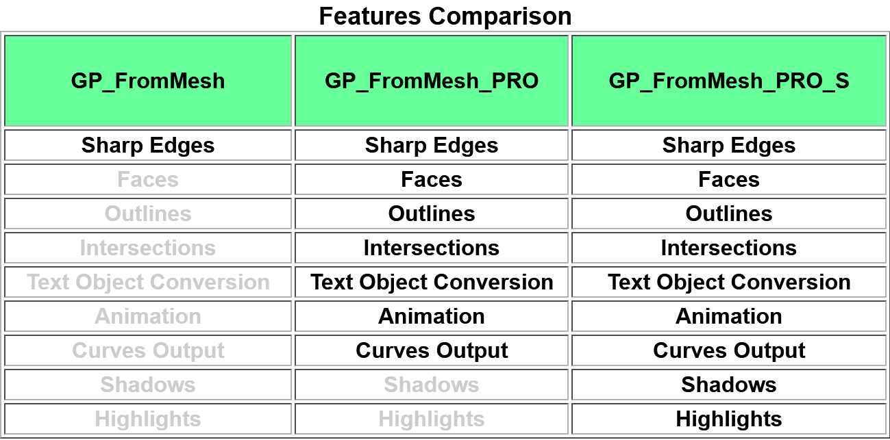 Blender Add-on for converting mesh objects to 3D Grease Pencil objects (or Curves) with edge filtering for sharp edges, intersections and curved surface outlines.